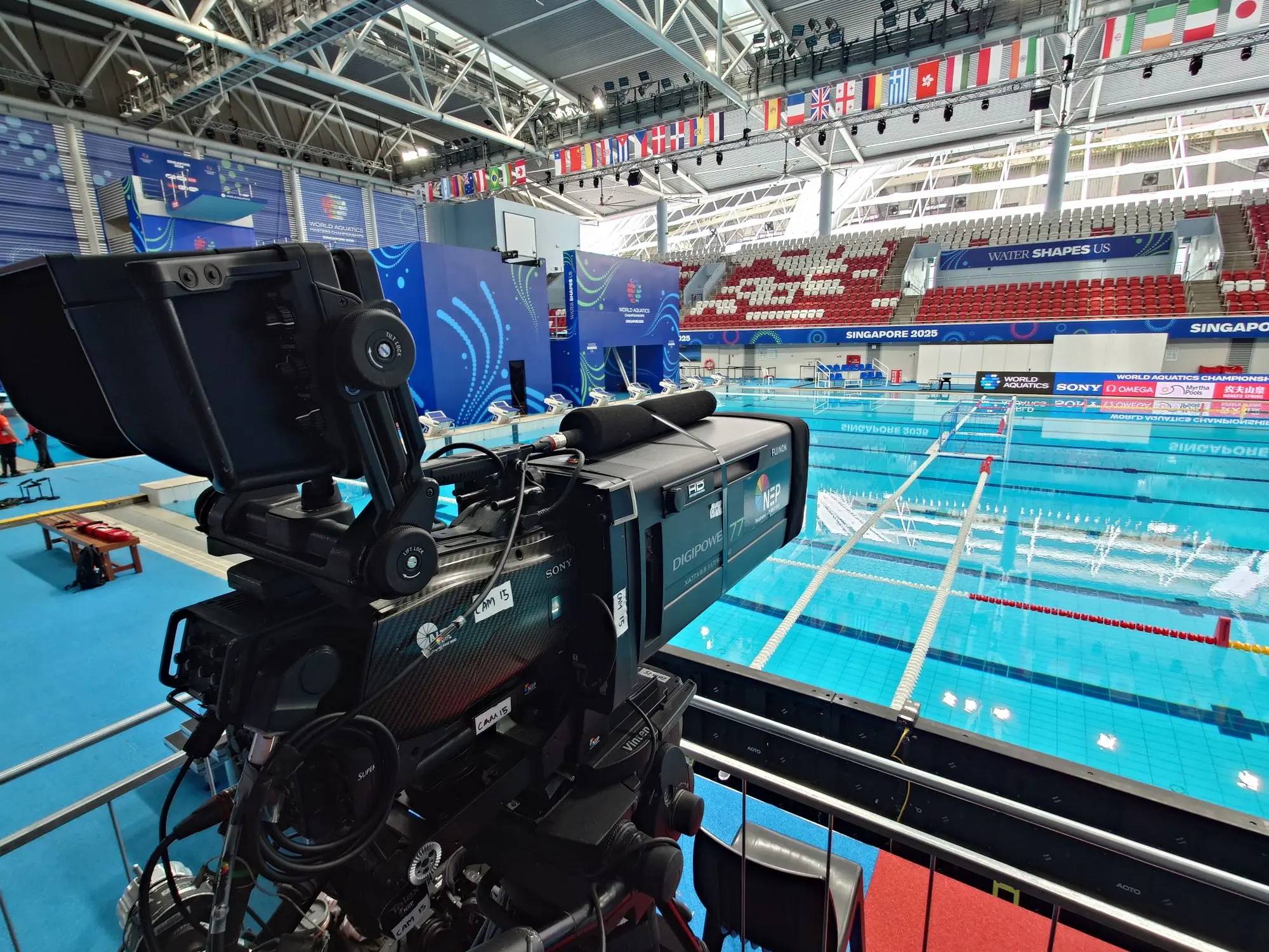 Singapore, 2025 – YourSide was proud to play a key technical role in the global broadcast of the World Aquatics Championships, held this year in the vibrant city of Singapore. Working under commission from NEP Australia and NEP Singapore, we delivered a robust IP-based audio solution that supported both live commentary distribution and coordination lines for the event’s world feed.