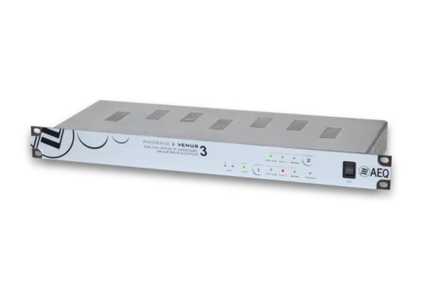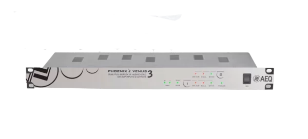 AEQ VENUS 3 is a dual IP stereo, full duplex audiocodec system. With a single unit it is possible to establish two bi-directional stereo or four mono (to one or two different locations).